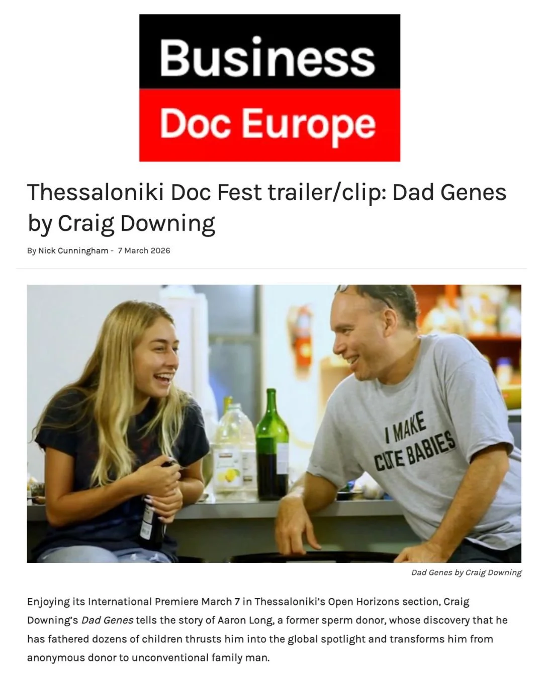 Thessaloniki Doc Fest trailer/clip: Dad Genes by Craig Downing: Dad Genes was featured in Business Doc Europe with an exclusive clip ahead of its sold-out international premiere at the Thessaloniki International Documentary Festival.
